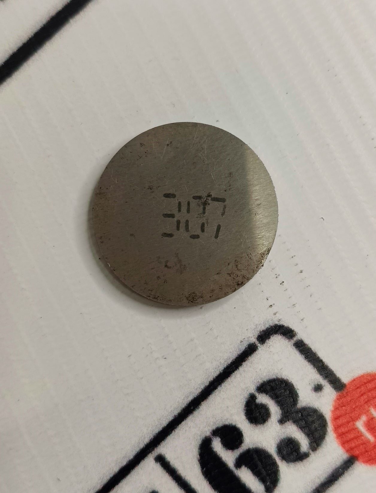 Регулировочная шайба для двигателей 2108-2115, 1118-1119, Приора, Калина 2, Гранта, Ока. Толщина шайбы 3.07 мм. Шайба представляет собой диск из высокопрочной стали с нанесенной на нем маркировкой. Шайбы регулировки клапанов необходимы для изменения зазора между толкателем, установленным на клапан и кулачком распределительного вала. Зазор изменяется за счет установки шайб разной толщины в толкатель.